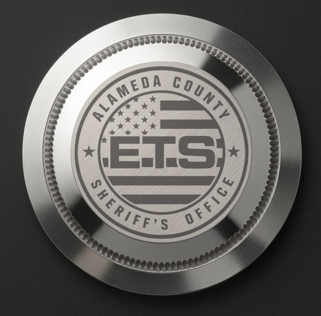 CUSTOM MATTE BLACK DUALTIME, SHERIFF LOGO, SILVER MERC HANDS, BLUE SECOND HAND, BACK ENGRAVING